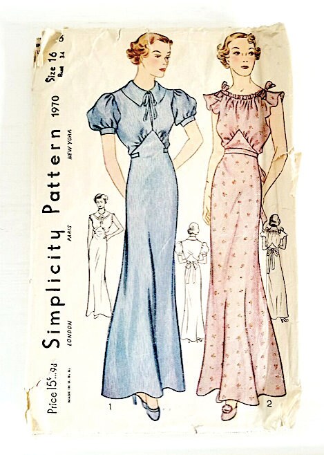 1930s Gown Pattern Lingerie Nightgown Simplicity 1970 Bust 34 Etsy